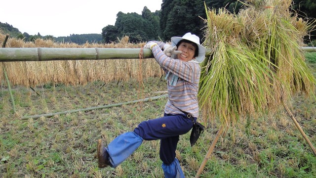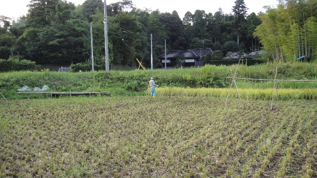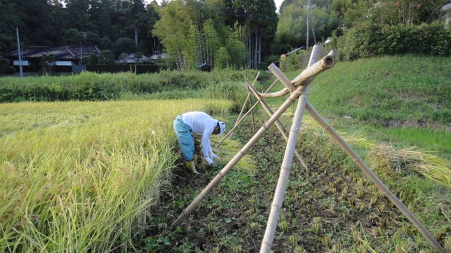 刈り取った稲の束をハザ掛し易い様に、