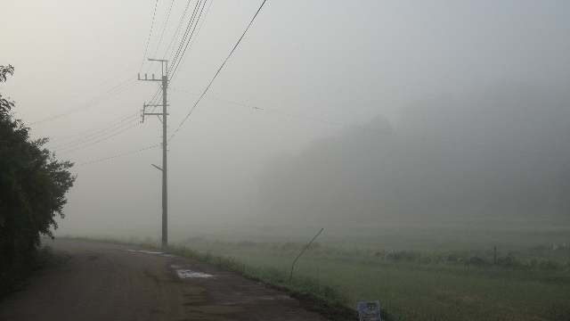 で乾杯。美味い!翌日、朝は靄で、幻想的。こういう日は暑くなるとのこと。