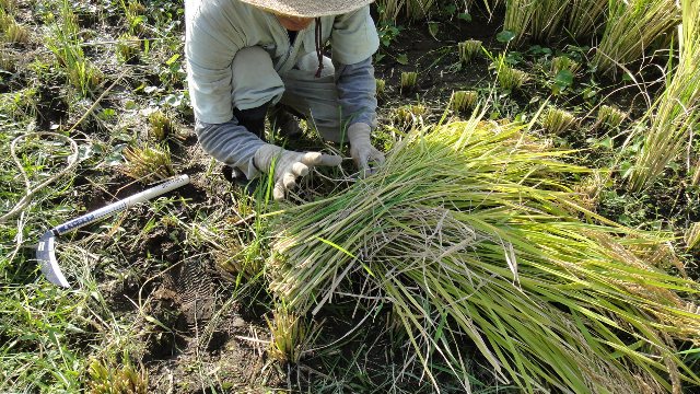 9時から昨日の残った稲を刈りが始まる。我々二人にとって今日が本番!